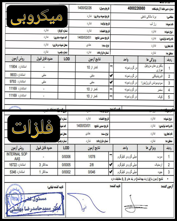 ✅دارای تست آزمایشگاهی غیر حیوانیِ فلزات و میکروب های مختلف برای اطمینان بیشتر🔬(به علت دستساز بودن محصول و اطمینان از مواد اولیه)